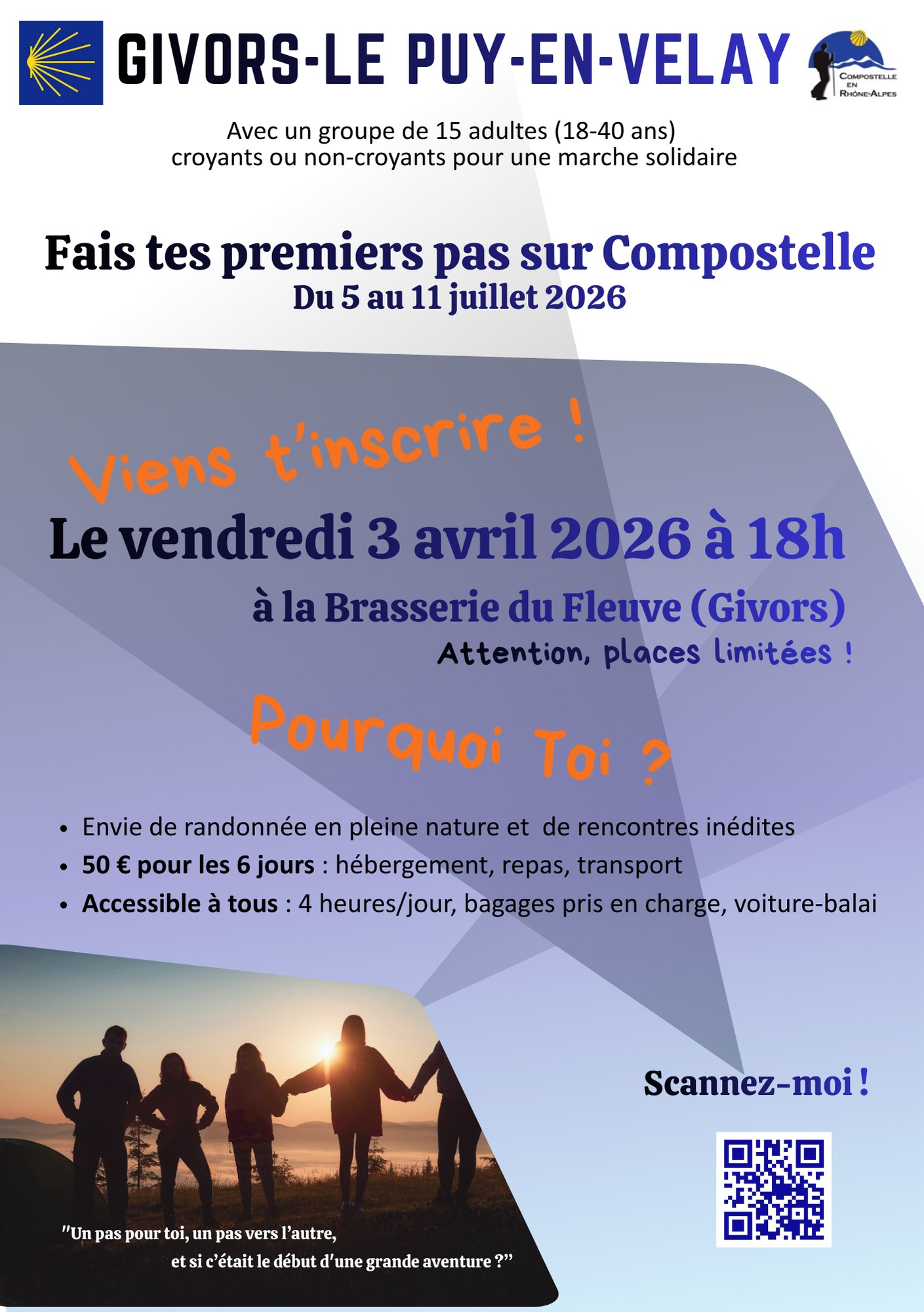 Les inscriptions pour la marche solidaire en juillet “Fais tes premiers pas sur Compostelle”...